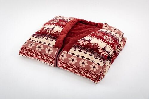 ノルディック柄かいまき毛布布団 2色組 エンジ+グリーン