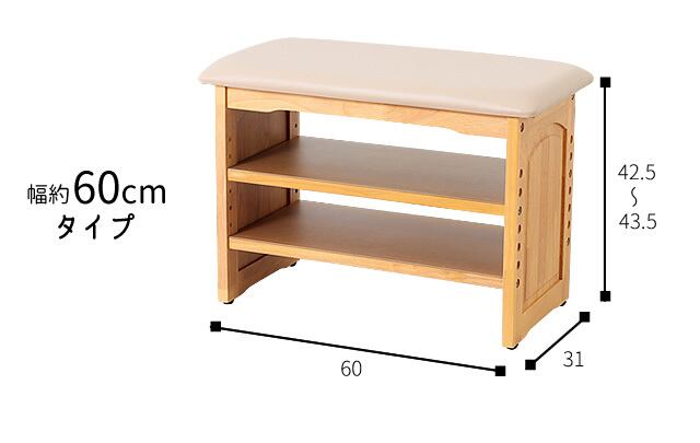 木製収納付き玄関ベンチ 45cm幅(ガタ付き防止付き)