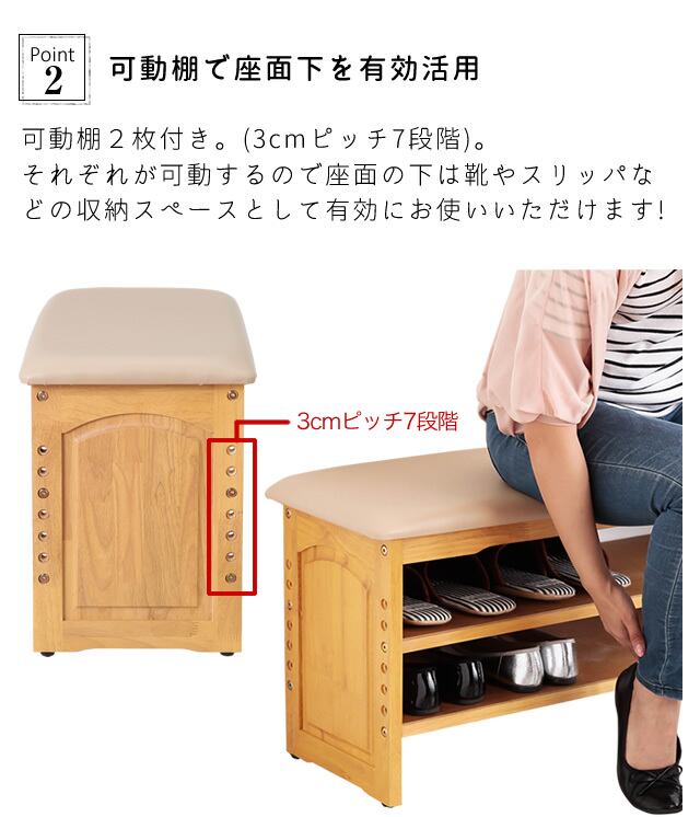 木製収納付き玄関ベンチ 60cm幅(ガタ付き防止付き)