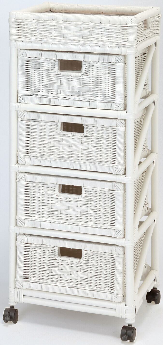 天然籐 籐製 ラタン ランドリー チェスト ランドリーラック〈スリム 3段 ホワイト〉