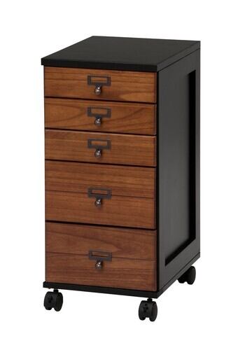 天然木キャスター付きチェスト5段 ブラックブラウン