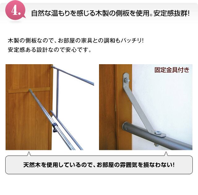 高級感のある側板を使用した〈棚なし・棚付き〉伸縮式クローゼットハンガー。