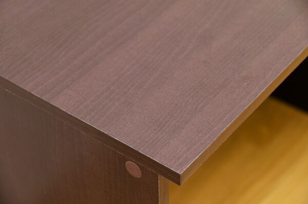 木目等を印刷したシート(紙の表面をコーティングしたもの)を表面に貼って仕上げています