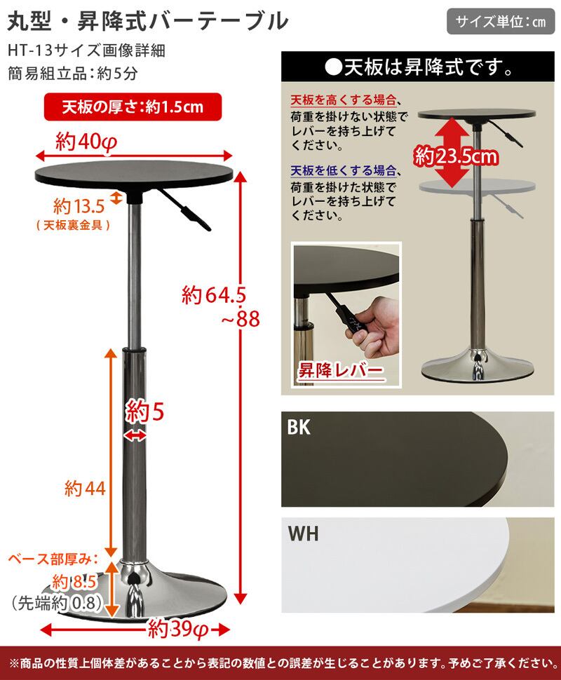 バーテーブル 40φ BK/WH