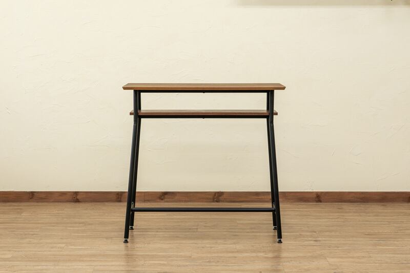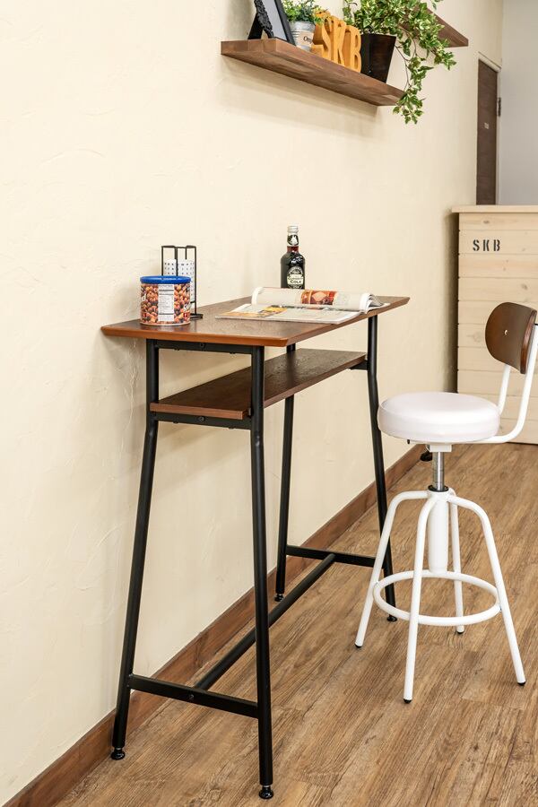 木目柄の天板と丈夫なスチールを組み合わせたカウンターテーブルです