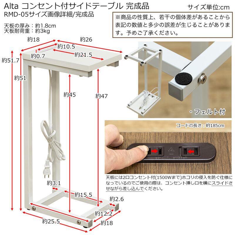 Alta コンセント付きサイドテーブル DBR/NA/WH