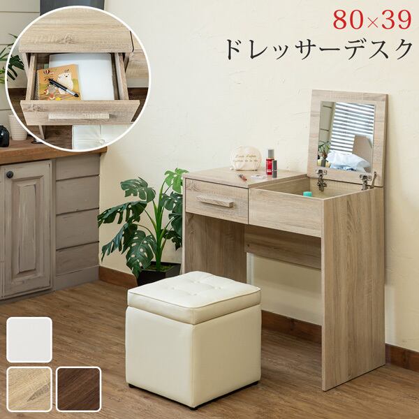 ミラーを開けばドレッサーに、閉じればデスクとして使える便利なアイテムです