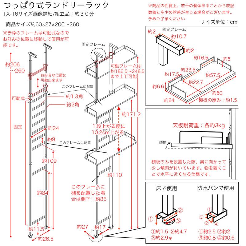 幅600×奥行270×高さ2060~2600mm(梱包サイズ:幅960×奥行280×高さ105mm)