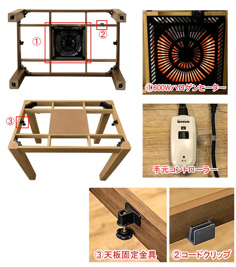 コタツとして使用しない季節は、天板がズレないよう固定金具が付いています