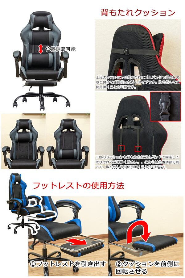 フルフラットメッシュレーシングチェア BK/BL/GR/RD