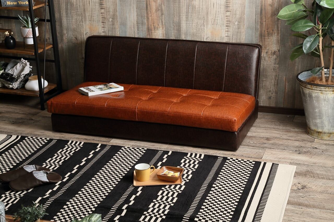 【2人掛け】ツートンカラーが魅力のヴィンテージ調ベンチソファ